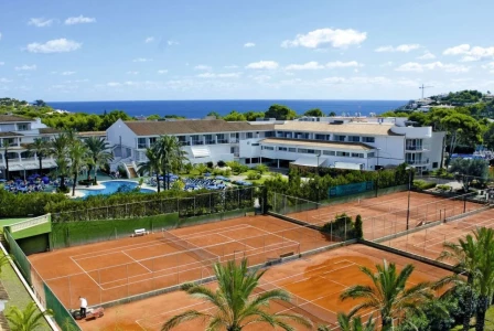 Beach Club Font de Sa Cala - the ideal location for a tennis camp in Mallorca. Just 80 metres from the sandy beach, with access to the aquapark, animation and playground, the hotel is a dream space for families with children. Here, sport meets relaxation - you'll develop your tennis skills on the courts, while outside aerobics, water sports, cycling and hiking in the picturesque surroundings await. Comfort, a variety of activities and a unique location have made the facility popular with guests for years.