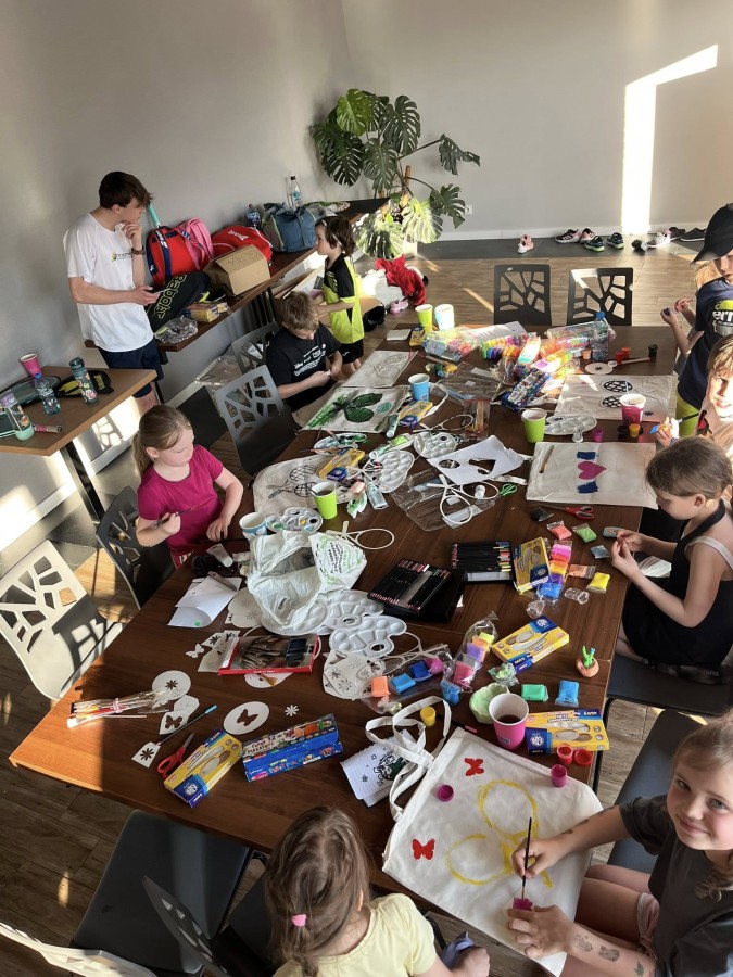 - Dla dzieci między 6 a 14 rokiem życia biorących czynny udział w obozie przewidziano codziennie 7,5h zajęć w grupach, w tym 3h treningu tenisowego, ogólnorozwojowego, gry i zabawy, animacje, seanse filmowe oraz zajęcia na basenie. Dzieciaki będą pod opieką animatora w godzinach 9-13 oraz 16-19:30.