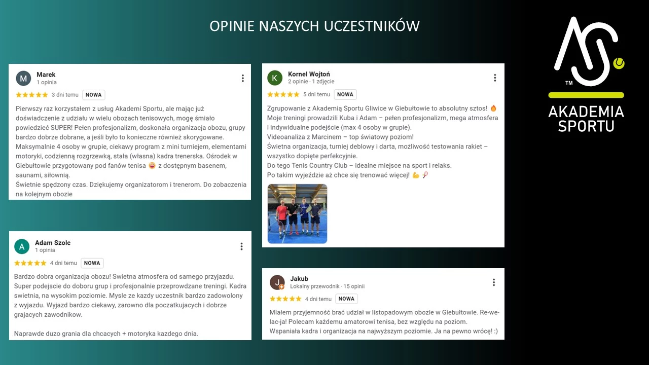No właśnie nie! Sporo osób rozpoczęło swoją przygodę z tenisem właśnie od obozu, gdzie nigdy wcześniej nie trzymali rakiety w ręce. Podczas całe tygodnia na pewno poznasz wszystkie podstawy tenisa i zarazimy Cię miłością do tego sportu :)