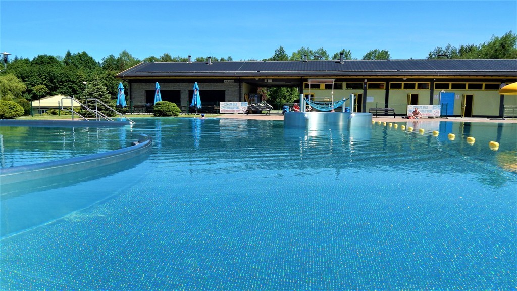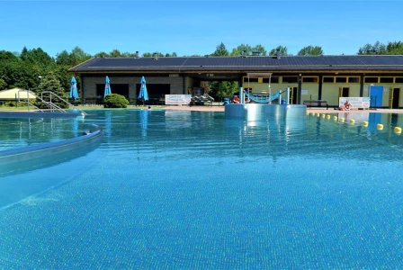 - Baseny zewnętrzne z atrakcjami wodnymi.